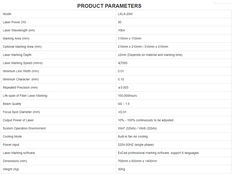产品名称:LXLA-20M Desktop Fiber Laser Marking Machine